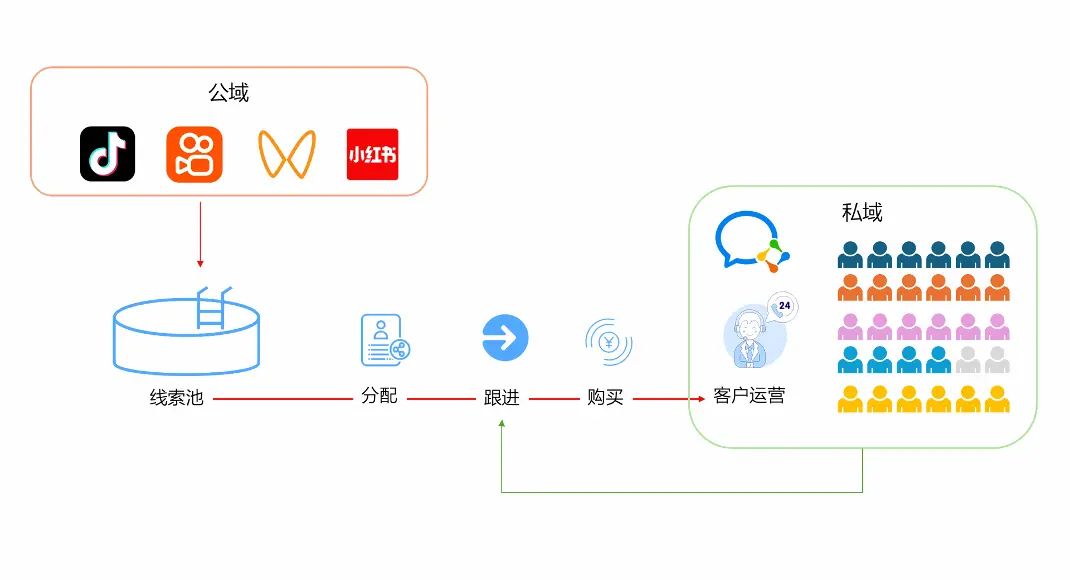 在技术、工具的加持下,进行公域获客和私域运营的全覆盖